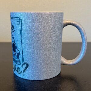 Does This Coffee Make Me Look Alive? Halloween ~ Skull ~ Silver Glitter Mug