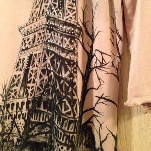 Beige 3/4 sleeve Paris print top.