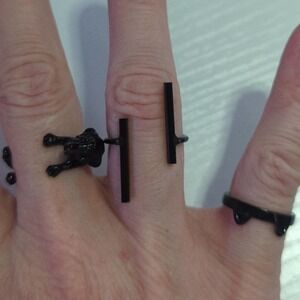 Dog And Cat 3 Piece Ring Set Black Shiny Open Unisex Sizes 6 And 8