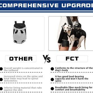 FCT Dog Backpack Carrier - Spine-Friendly for Midium to Large Dogs (18-30 lbs), Horizontal Design Dog Carrier with Adjustable Back Straps,Legs-Out Comfort for Travel/Hiking/Cycling (Black, Size L)