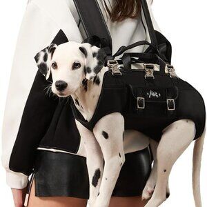 【Spine-Friendly Horizontal Design】Unlike traditional vertical carriers that force pets into a curled pose, our dog backpack carrier's horizontal structure evenly distributes weight, reduces spinal pressure, and ensures maximum comfort and spinal support during travel.