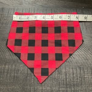 Dog Bandana Slide On Collar Elastic Band Buffalo Plaid Black Red Medium New
