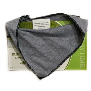 This dog bandanna is in a Gray soft Jersey Tee Material which has a bit of stretch and flexibility to the material. A super cute “Trouble Maker” Graphic.