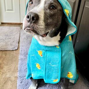 🧿Medium Dog Bathrobe - Bath robe measures 26” x 24” and is best for dogs that weigh around 30-50 lbs. We have more sizes available so every furry friend can have their own towel robe and look even cuter than they already
