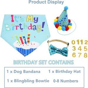 🧿Package: 1 pc dog scarf, 1 pc dog hat, 1 pc bowtie, 0-8 birthday numbers. Dress up your pet with this adorable dog birthday party outfit now! Let's take photo and record the beautiful moment.