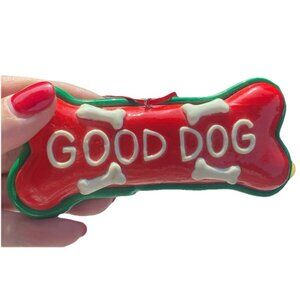 Dog Biscuit Christmas Tree Ornament Bone Good Dog Loyal Companion Holiday Puppy In Very Good Pre-owned Condition. No chips or cracks. Small area of discoloration on the larger ornament. Please see the pictures.