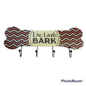 Live Laugh BARK Quote on Dog Bone Shaped Wall Hook Plaque