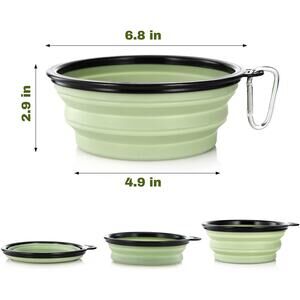 SIZE: 5.1 X 3.5 X 2.1 inch ( 5.1*3.5*2.1 inch), each bowl holds up to 12 fluid ounces of water or 1.5 cups of pet food. The dog bowls can be collapsible to different sizes, suitable for all small to medium dogs, cats and other animals to store water and food when going outside.