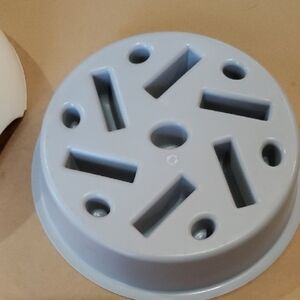 These elegant white and gray dog bowls are designed to encourage slower eating, promoting better digestion and overall health for your pet. The set is perfect for any dog, offering a stylish and functional addition to mealtime. Crafted with care, these bowls ensure your furry friend enjoys every meal. Small chip on bottom of white bowl. does not affect bowl
