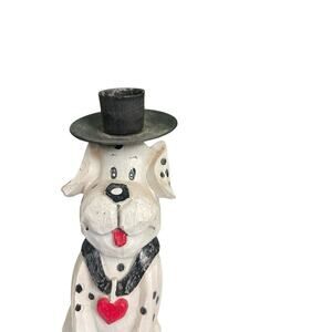 Vintage Wood Black and White Dalmatian Dog Candlestick Holders