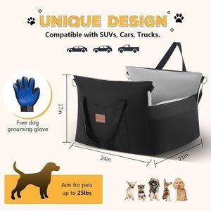 * 【Unique Design】(24x21x17), offers ample room for pets up to 25 lbs, surpassing curved seats of equal size. Compatible with SUVs, cars, trucks, and more, it ensures a comfortable and secure ride for furry companions. Our innovative car seat for small dogs boasts a design that exceeds standard dimensions, providing extra space for dog car seats for small dogs