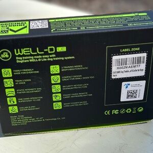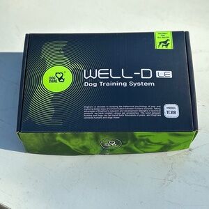 Dog Care Well-D LE Dog Training System NWT. This training system comes with an adjustable collar that fits 15lb.-100lb. dog. Includes a remote that is pocket size with long lasting battery and charging cord. System has 3 different training modes and is waterproof. This was opened for photos and is NWT.