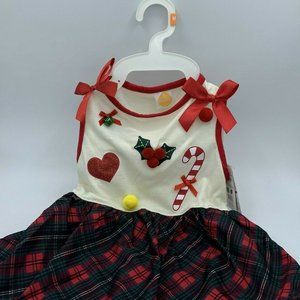 Dog Christmas Outfit Size Medium Red Plaid Dress NEW