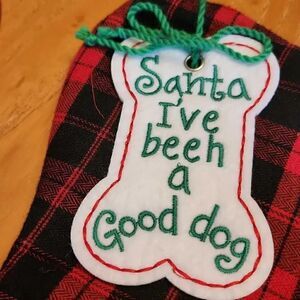 Dog Christmas stocking,stocking hanger and dog dish Santa I've been A Good Dog