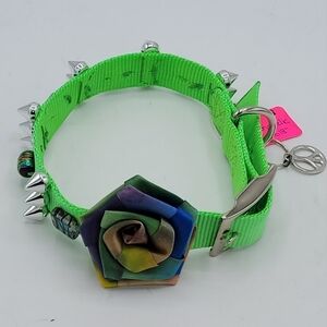 Dog Collar PSYCHEDELIC Neon Green Flower Bow Gems And Stones