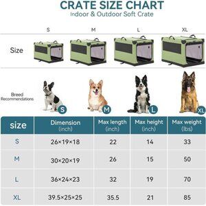 🧿As pet owners, we know that traveling with our furry friends can be a challenge, especially when it comes to finding the right crate to suit their size and needs. For smaller pets, our 26-inch crate is perfect and can fit any size cat or small dog, such as Maine and Dachshunds. Our 30-inch crate is ideal for medium-sized dogs like Poodles, while our 36-inch crate is perfect for medium to large-sized dogs like Labradors. Our 39.5-inch crate is suitable for larger breeds such as German Shepherds.