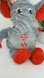Adorable plush elephant toy. Features soft gray and red fabric. Perfect for cuddling.
