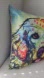 Vibrant throw pillow cover with a dog print. Features a mix of bright colors. Perfect for adding a pop of color to any room.