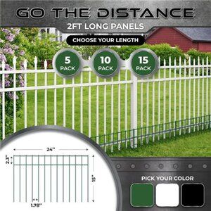 🧿Included in each Box: Comes with 15, 10 or 5 Pieces of decorative garden fence depending on your length needs. Each fence panel is 5mm Galvanized Steel metal Fence Panels with pointy bottoms, colored zip ties, and a hammer cap for easy installation. Some soils and ground need to be prepped before installation to loosen the soil making it easier to hammer in the no dig fence panels below ground.