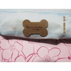 Snuggly blue hoodie for dogs by Koolaburra (UGG) in size medium. This adorable hoodie features shades of blue and a cozy hood, perfect for keeping your furry friend warm and stylish. The Koolaburra patch at the bottom adds a touch of brand recognition.