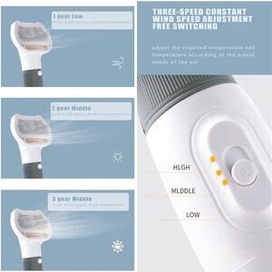 【Low noise & Three modes of temperature regulation】Pets are terrified of the noise from human hair dryer. Our dryer is lower noise (<57 dB) and it won't scare your pets away. The dryer provides 3 modes of high,middle,low temperature adjustment. Choose the comfortable heat for your pet.