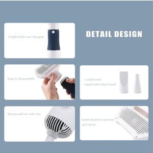 【Dryer and Slicker Brush Design】3 in1 innovating design combine the dog hair dryer with pet hair brush, allow you could groom your little beloved pets while drying their hair. equipped with three replacement heads to meet different needs.