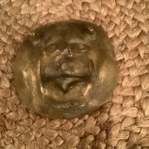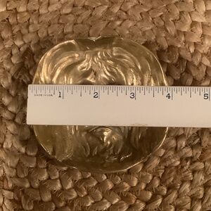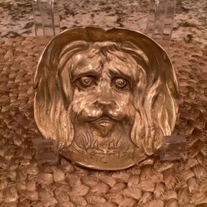 Offering this vintage dimensional dog face brass tray for display or creative uses.