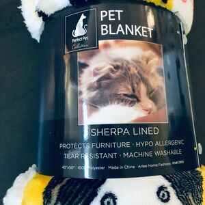 NWT adorable dog face portrait design plush yellow pet throw blanket with Sherpa reverse. 40”x50”.