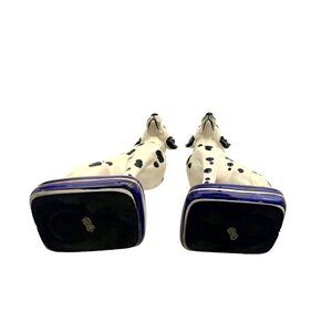 Beautiful dog figurine pair is a rare vintage decor item that will add charm to your home. The black and white spotted Dalmatian statues are made of ceramic and feature the Staffordshire Fitz and Floyd character, making them a perfect addition to your animal-themed collection.