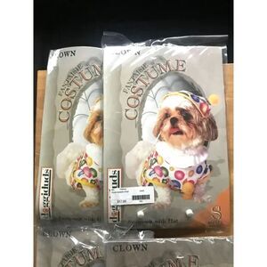 Dog Halloween Costumes Size: Petite Small Clown Jumpsuit w/ Tail {2} Pac Bundle