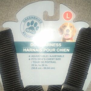 Dog Harness size Large adjustable fits dog’s chest size 20” to 26” says