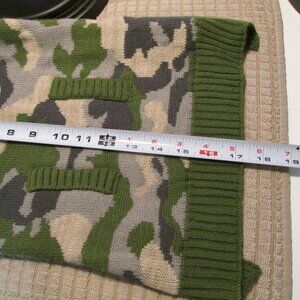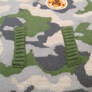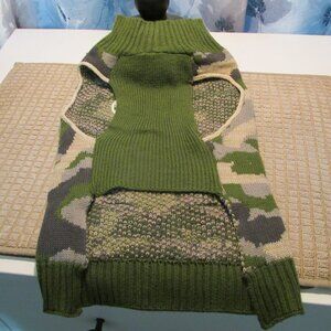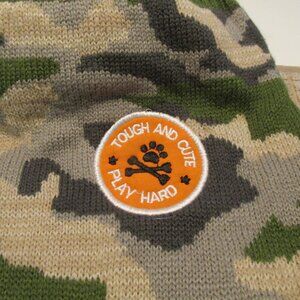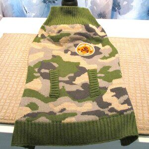 Tough and Cute Play Hard Dog Knit Camouflage Sweater. Perfect for hunting season. It is 10" wide at shoulders, 17" long and is very stretchy. Lightly used and in great condition. From a smokefree home.