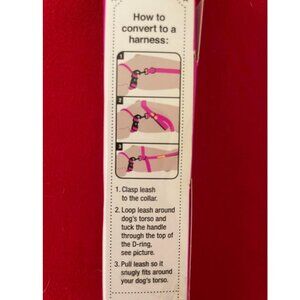 This discontinued, brand-new, 8-foot, black and red, no-pull dog leash features cushion handle, D-ring, and it converts to a harness. Fits M-XL size dogs.