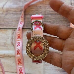 Pre-loved in excellent condition, fabric and nylon dog (or cat!) leash and collar (non-adjustable) with breast cancer ribbons/crystals and bling brooch detail. So chicđź’• Save the tatasđź’•
