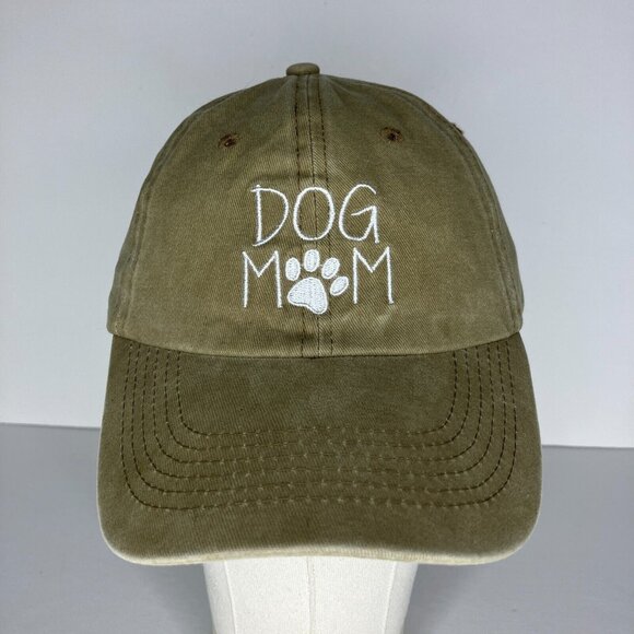 Dog Mom Beige Green Adjustable Hat