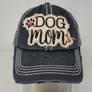 Dog Mom Strapback Hat Blue One Size Embroidered Distressed 6 Panel