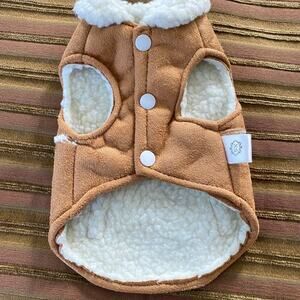 NWOT Dog Outfit Brown TAN Sherpa Fleece Pet Vest XS Boy Girl Warm Sleeveless Snap Closure Summer/Fall Ready!