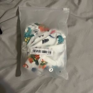 NWT white with brightly colored dinosaurs.