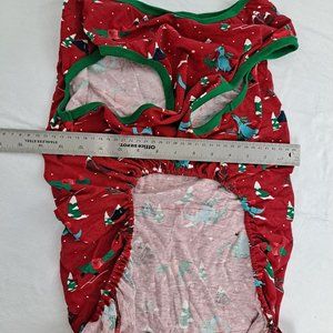 Dog Pajamas Pj's Winter Dinosaur Snow Pattern Red Green XL