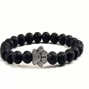 New with tags dog paw beaded bracelet set of three in teal, white, and black. These bracelets feature a playful dog paw design and are made with high-quality beads. The elastic band ensures a comfortable fit.