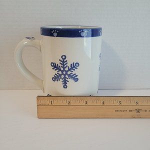 Dog Paw Mug Large 5 " H 3.25 Dia Snowflakes Ceramic Coffee Tea Winter Blue White