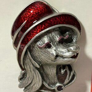 This listing is for one Dog Pin With A Drop-Down Loop For Eyeglasses And Id Vintage #RPJ6M. Designer optical jewelry by Outasight is a clever, fun, Red Hatter way to hold readers, sunglasses, name tags, ID badges.