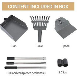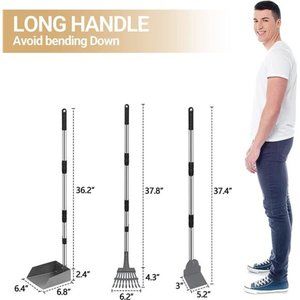 🧿Pooper Scooper Equipment in Pack: 1 pan, 1 spade and 1 rake kit, meet almost all the needs of using. The size is over 37 inches, you need not bend over when clean pet poop.