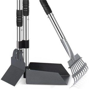 Dog Pooper Scooper, Dog Poop Tray and Rake Set with Long Stainless Handles