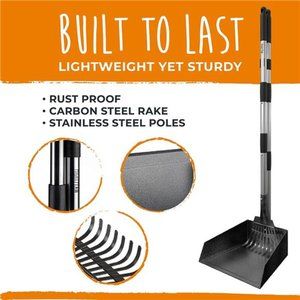 đź§żRust Proof, Safe & Easy to Clean: Thanks to its heavy duty aluminum tray, carbon steel rake, stainless steel poles and polypropylene plastic hand grips, our pooper scooper set is mighty durable. Use it in all weather conditions and easily hose it off after each use.
