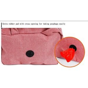 * This design has a large center pocket with a zipper closure, a comfortable handle with Velcro to protect the leash and your hand, strong nylon webbing and a poopbag dispenser. POOP BAGS NOT INCLUDED.
