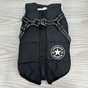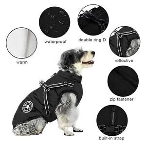 Dog Rain Coat Winter Jacket Harness – Size Large, 13.5", Black Waterproof Outer Shell with Full Zip Closure, Warm Fleece Interior Lining, Windproof and Insulated, Lightweight and Comfortable Fit, Reflective Trim for Safety, Ideal for Cold Weather Walks or Outdoor Adventures.
