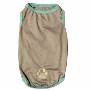 This cute pet rash guard shirt is great for the pool or beach, or anytime. Lightweight and dries quickly. Features an embroidered paw print on the back. Stretchy. Solid Pink with gray trim.