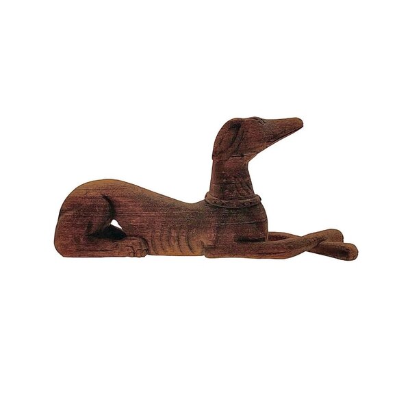 Dog Sculpture Carved Wood Whippet Statue Vintage Greyhound Figurine Rustic Decor