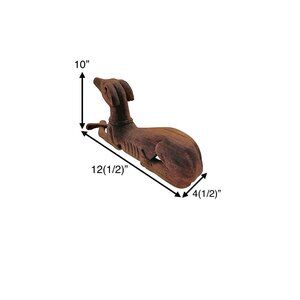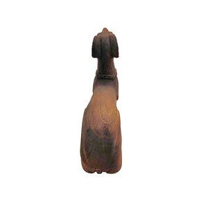 This vintage carved wood statue features a Greyhound, a breed of dog known for its elegance and grace. The intricate detailing and craftsmanship of the wooden sculpture make it a unique and charming piece of home decor. Perfect for animal lovers and collectors alike, this statue adds character and personality to any space.